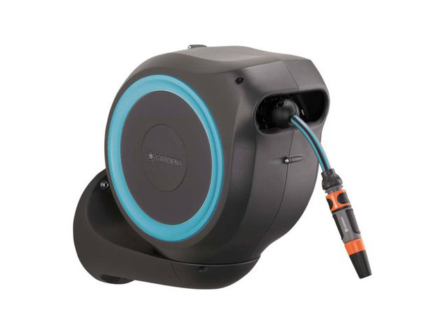 De Gardena wandhaspel maakt besproeien bijzonder eenvoudig en comfortabel. Slang wordt automatisch opgerold, zo blijven uw handen schoon. De praktische haspel wordt aan de muur bevestigd en is 180° zwenkbaar. Ook de slang kan met weinig inspanning worden uitgetrokken en gestopt met korte tussenpozen van maximaal 50 cm. De kwaliteitsslang van 13 mm (1/2”) levert een hoge waterdoorstroom en optimale werking van de waterspuit.