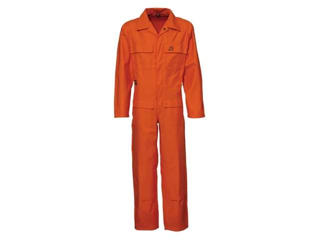 Overall met verdekte drukknoopsluiting. Antistatisch en vlam vertragend door Proban behandeling. ARBO uitvoering.