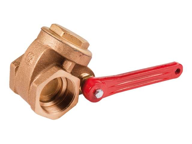 Snelafsluiter van brons voor het afsluiten van gasolieleidingen in de machinekamer bij brand en panieksituaties. Volle doorlaat met massieve kogel voorzien van T-boring. Aluminium hendel.