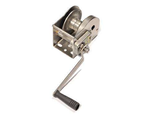 Trailerlier, RVS 500 kg. Het omhoog draaien van scheepsmasten, als hijslier op luikenwagen, enz. RVS 316 uitvoering, handkracht ca. 22 kg.