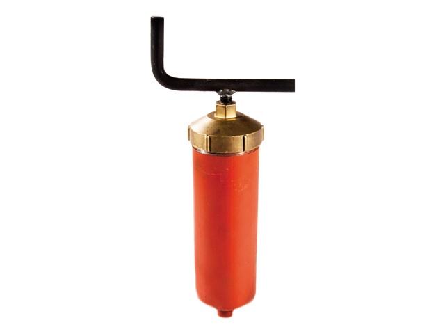 Solide vetpers met spindel bestaande uit bronzen kap, stalen huis, oplopende spindel met rubberen zuiger. Leverbaar met en zonder voetplaat.